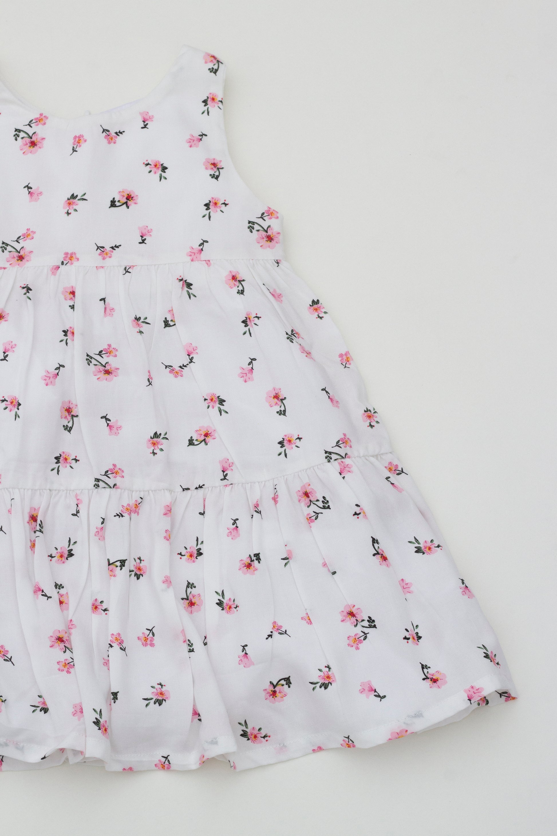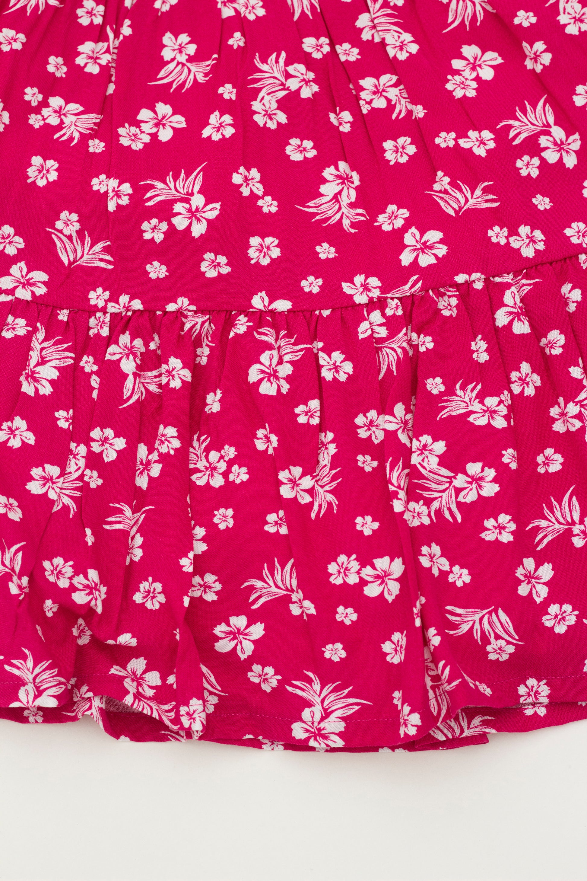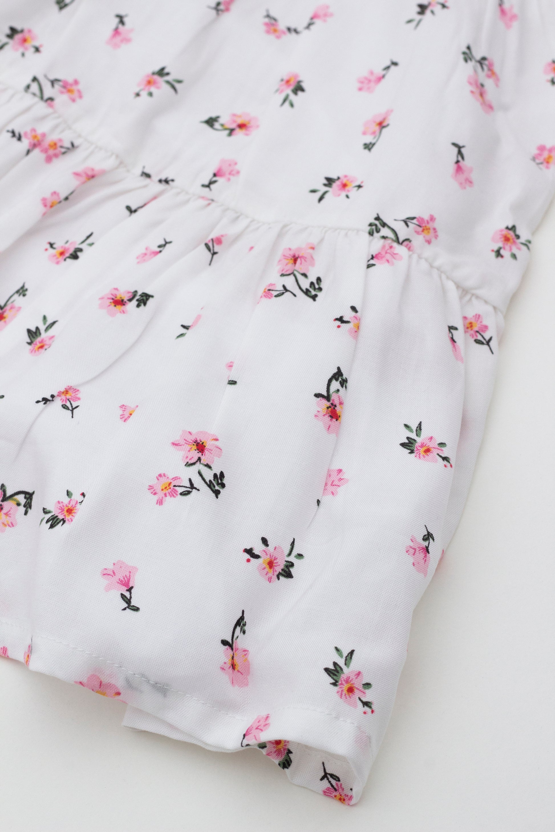 - Print: Pink flowers on white background
