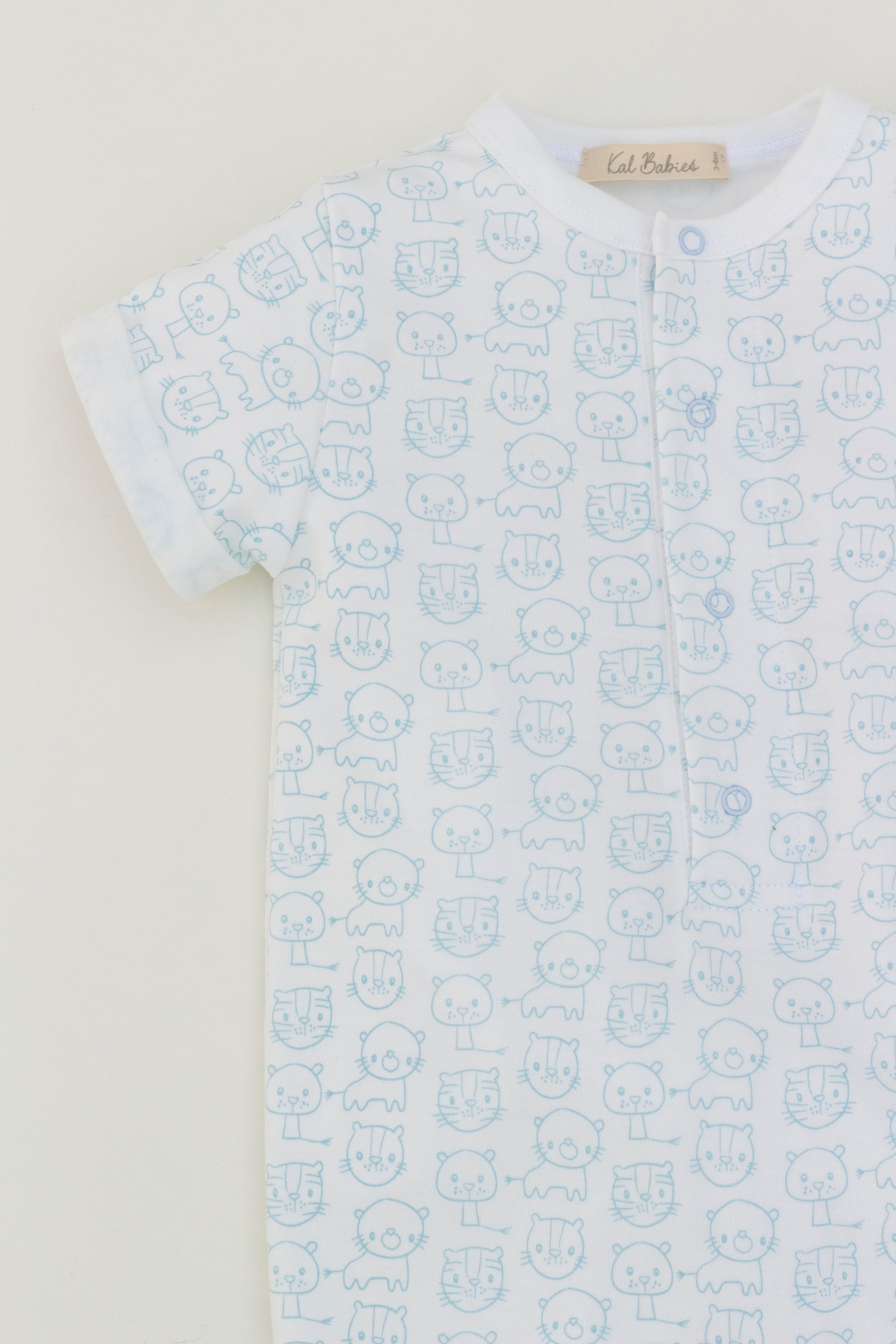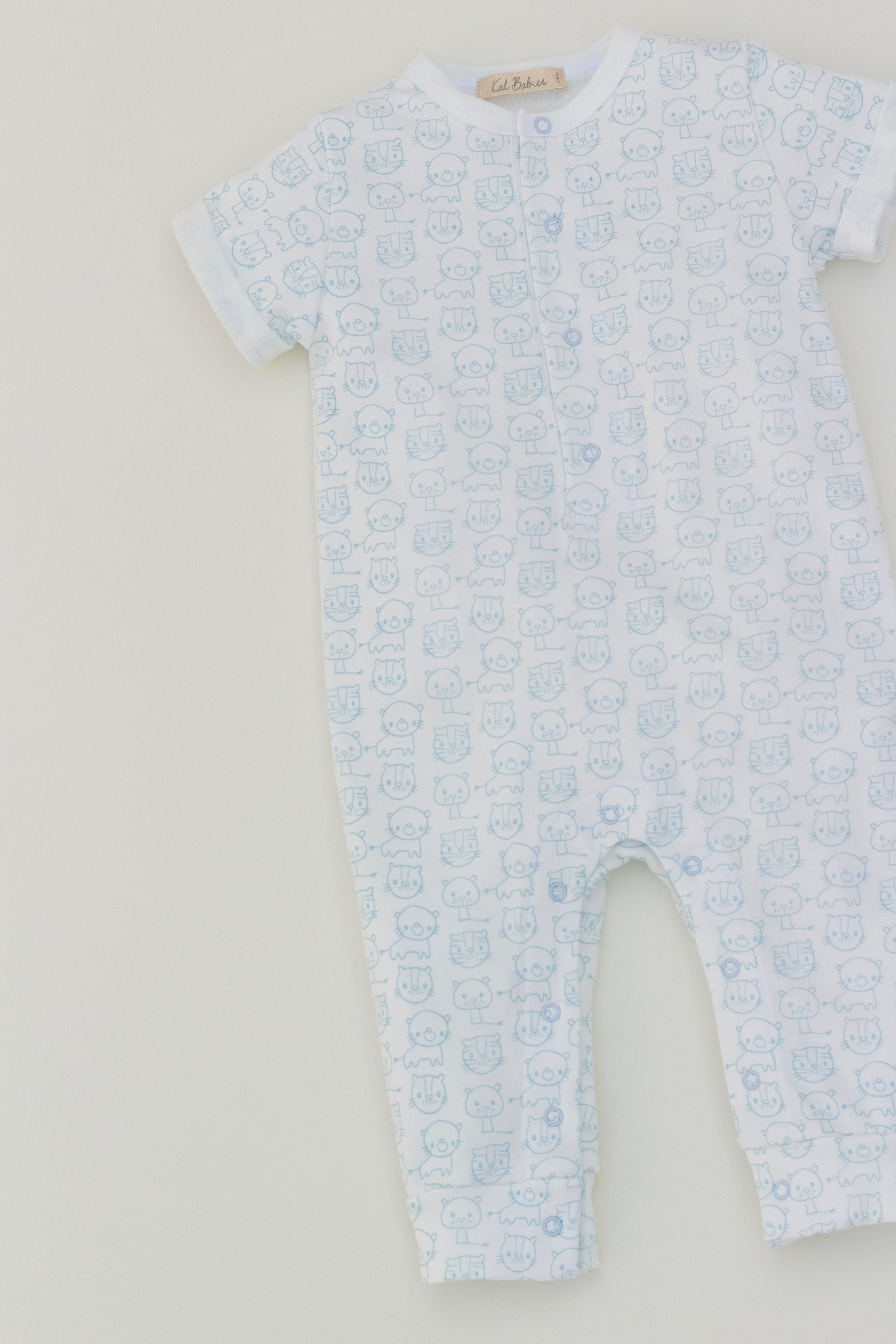 This short sleeve romper combines comfort and practicality for your little one. Crafted from organic cotton, it's naturally gentle on delicate baby skin while providing breathable wear throughout the day. The relaxed fit allows freedom of movement, perfect for active babies and toddlers. Convenient snap closures make diaper changes quick and effortless. Featuring an adorable cats and dogs print, this playful design brings joy to everyday dressing. An essential piece that balances style, functionality, and skin-safe materials for your baby's wardrobe.