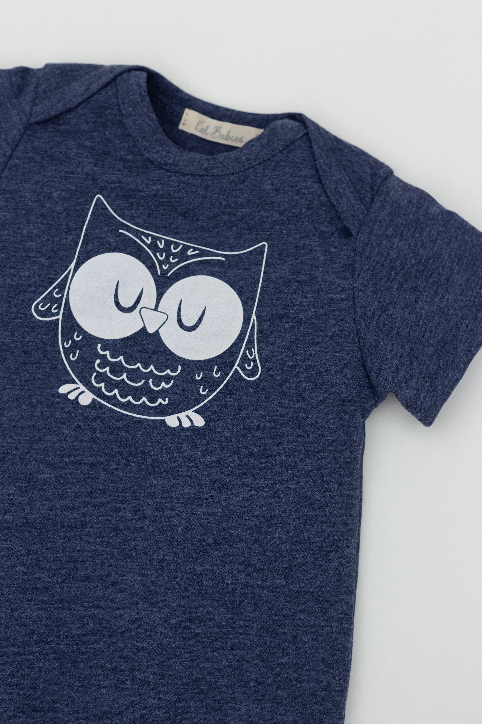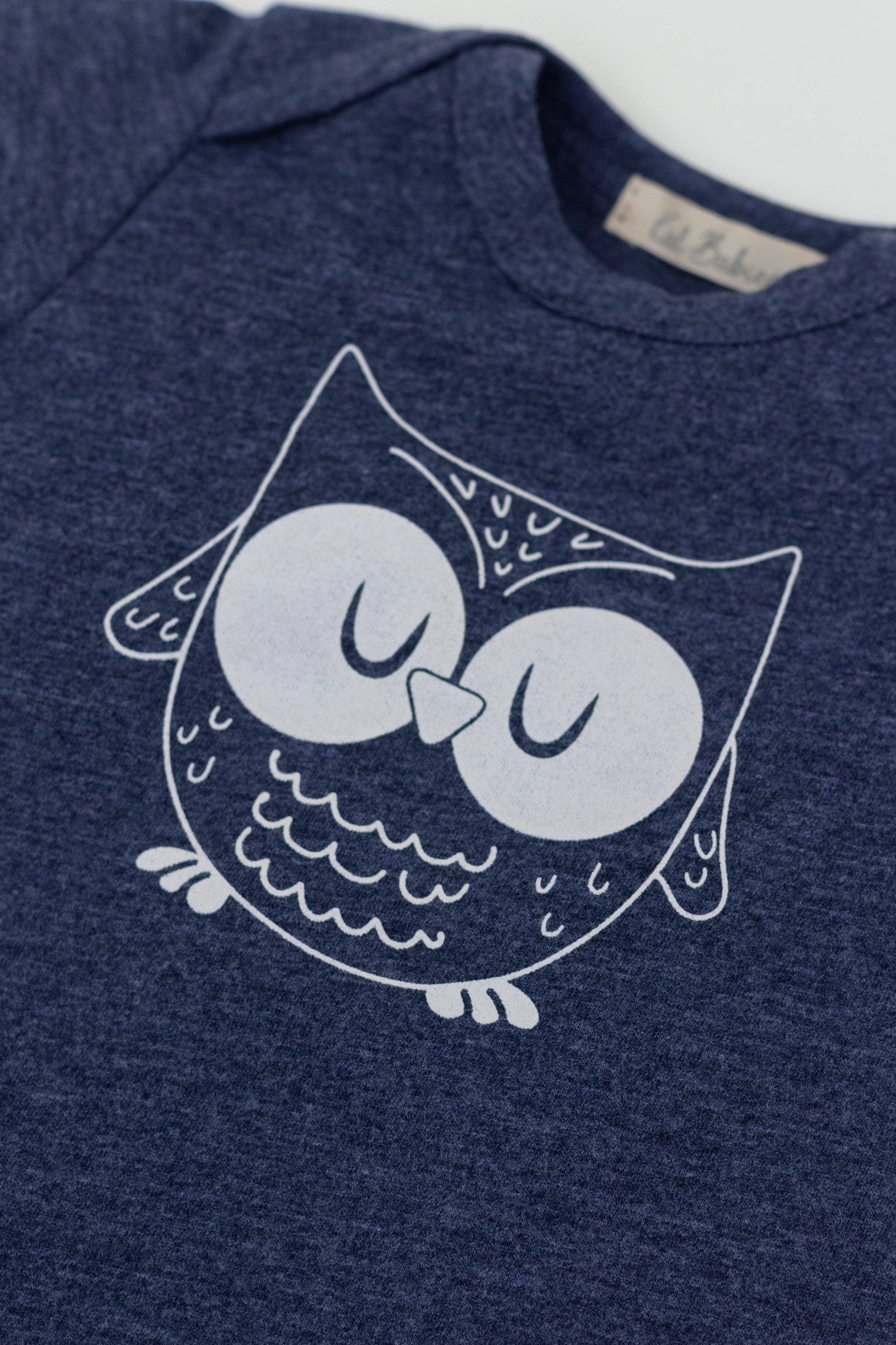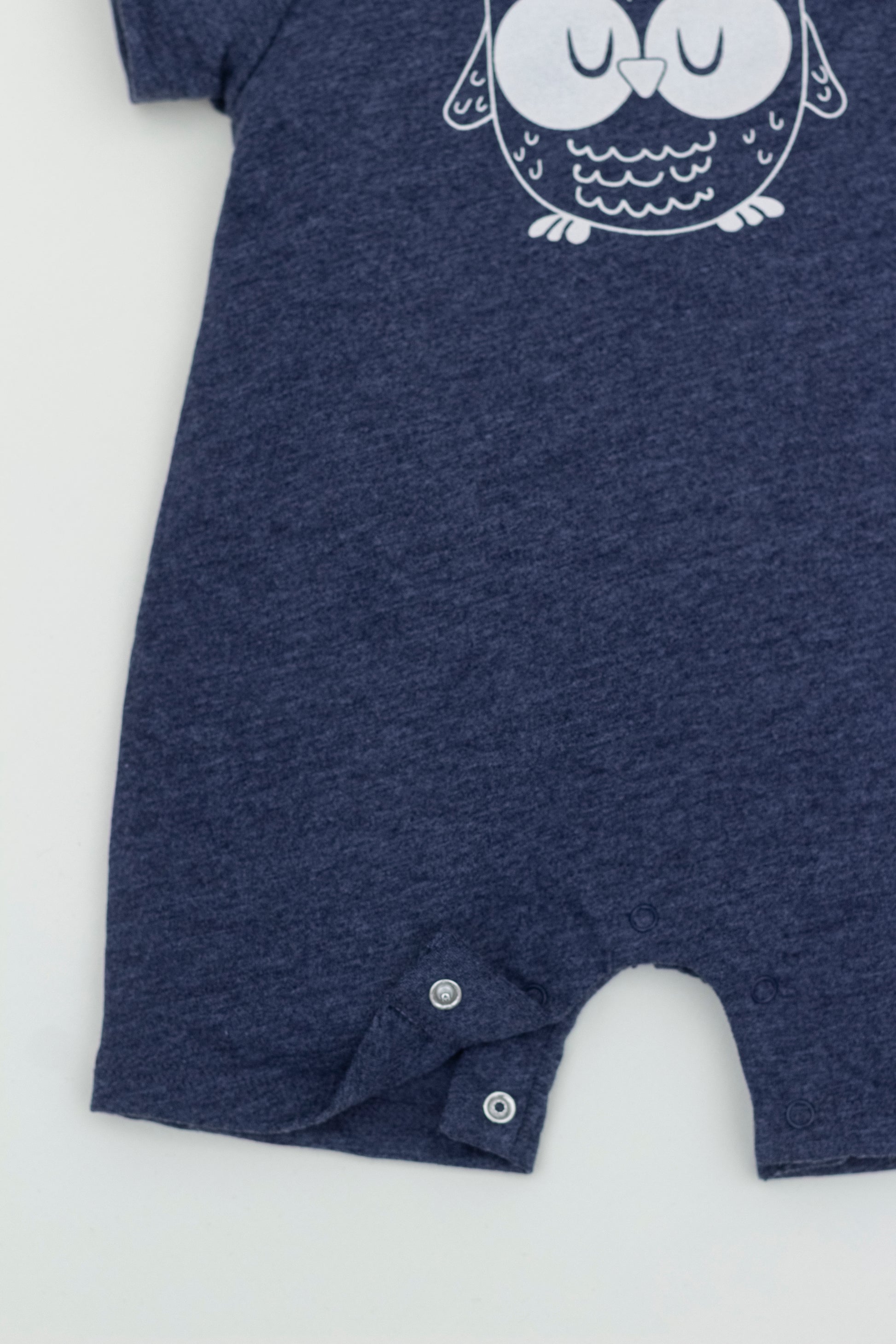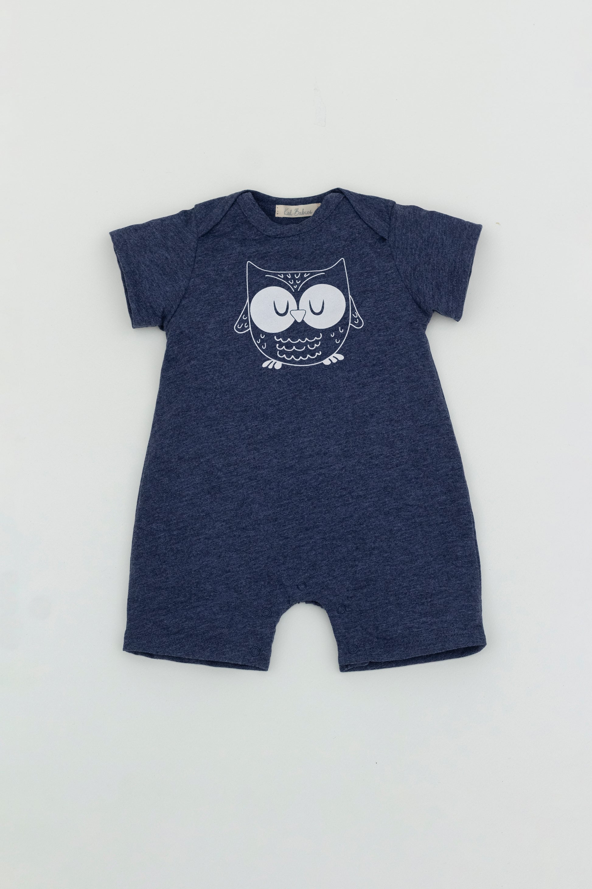 This blue romper features a relaxed fit designed to provide your baby with comfort and ease of movement throughout the day. The charming owl graphic on the front adds a delightful touch, making it both functional and visually appealing. Crafted to suit delicate skin, this romper is perfect for everyday wear while keeping your little one cozy and stylish.